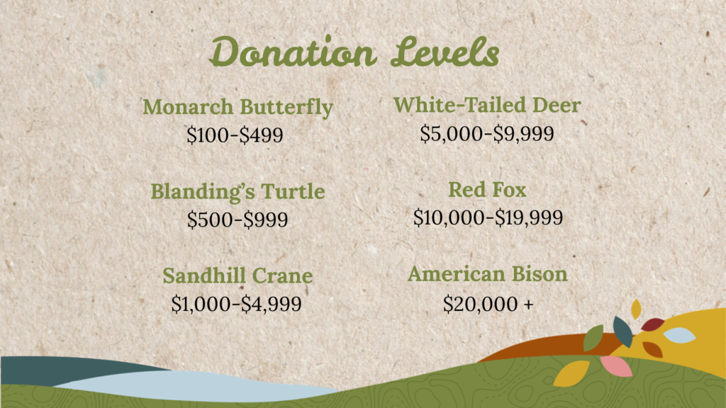 In 2026, the Friends of the Hormel Nature Center is committing $200,000 to build the Nature Playscape about a half mile from the Nature Center’s parking lot along the Black Trail across from a restored native prairie on the way to the observation tower. More financial support is needed to make the Nature Playscape a reality. The Friends hopes to raise at least $190,000 to fully fund the project targeted for construction in late-2026.